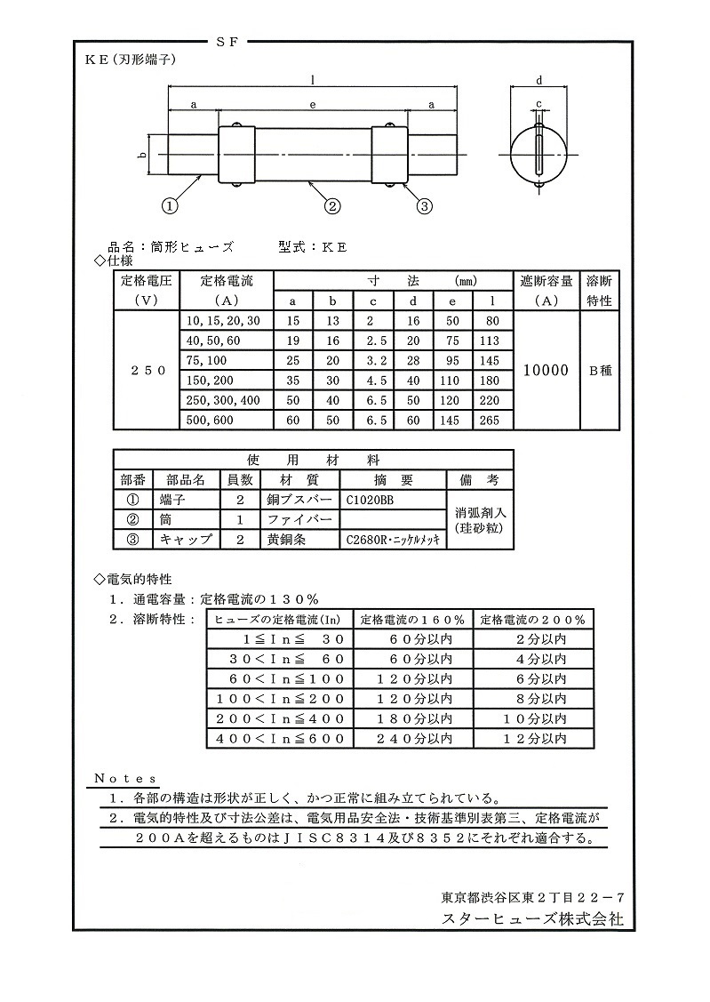 | 性能 | : | 電気用品安全法及び JIS C 8352 (配線用ヒューズ及びホルダー通則)に適合します。 |