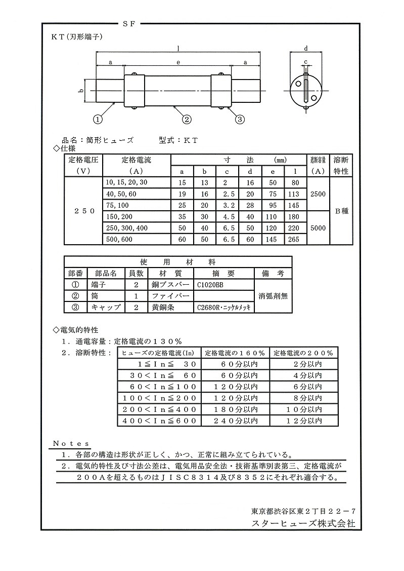 | 性能 | : | 電気用品安全法及び JIS C 8352 (配線用ヒューズ及びホルダー通則)に適合します。 |